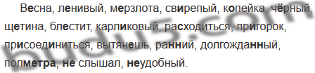 В..сна, л..нивый, м..рзлота, св..репый, к..пейка, ч..рный, щ..тина, бл..стит, карл..ковый, ра(з, с)ходиться, пр..горок, пр..соед..ниться, вытян..шь, ра(н,нн)ий, долгожда(н,нн)ый, пол(метра), (не)слышал, (не)удобный.